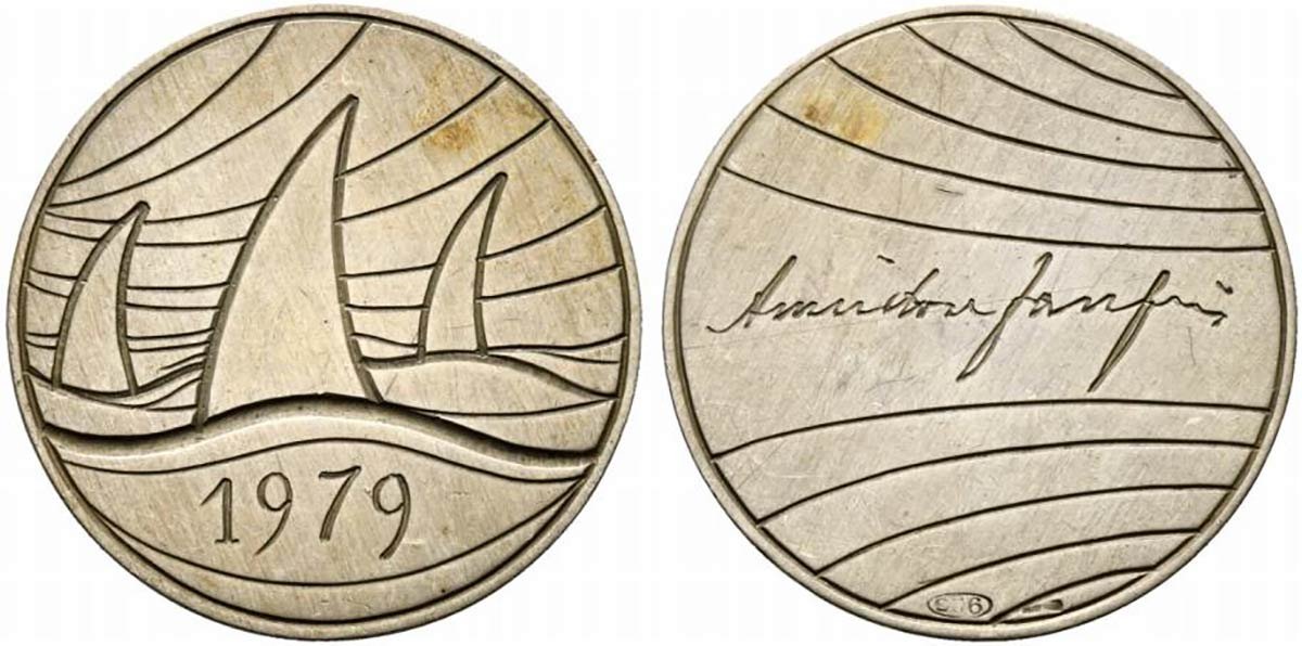 Amiltore Fanfani 1979 Dritto: tre vele in mare in esergo: 1979 | |