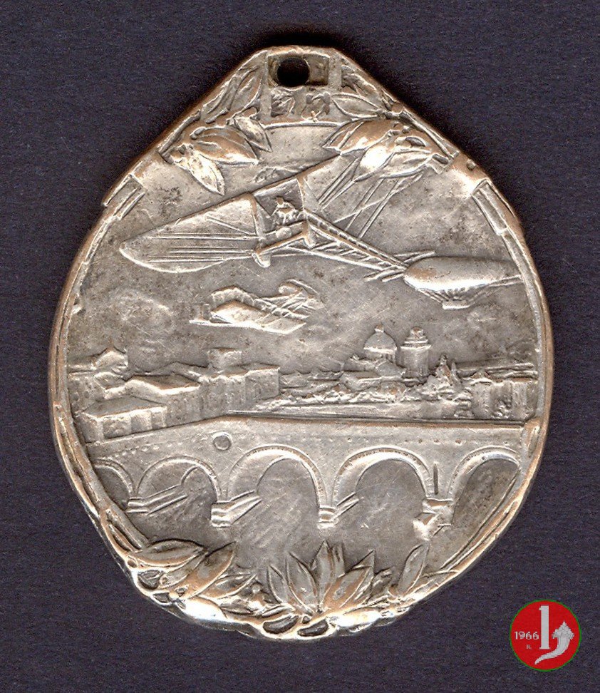 Circuito Aereo Verona 1910 Obverse: Statua equestre a sx, tra Stemmi d'Italia turrito e di Verona tra rami d'alloro presso il bordo a dx: ALB in basso: RICORDO = CIRCVITO-AEREO = VERONA MAGGIO 1910 | |