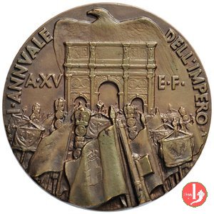 Verso: due fascio diagonali, a dx, sormontati a sx, da rombo a doppia cornice con fascio verticale, il tutto tra rami d'alloro