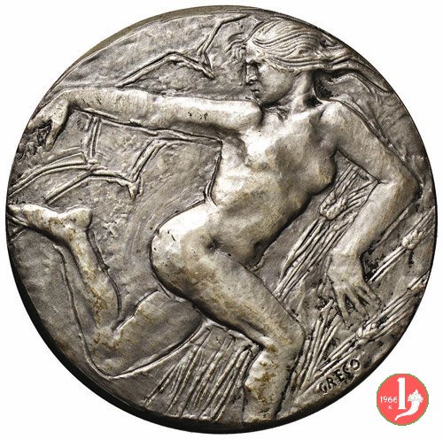 IPZS - Estate 1979 Dritto: figura di donna, nuda, gradiente a dx e volta a sx, entro campo di spighe, sullo sfondo uccelli in basso, a dx: GRECO torchio da conio | |