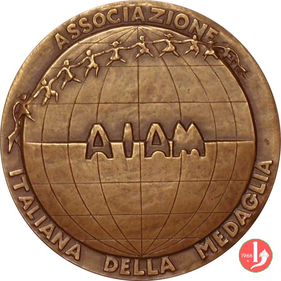 AIAM -A. XIII- Anno Internazionale della Donna 1975 Dritto: ANNO INTERNAZIONALE DELLA DONNA tre donne nude danzanti reggono nastro su cui: 1975 in basso, entro nastro: SPAGNOLI _ FECIT nel campo a sx: AIAM in basso, circolarmente: IN CONCORDIA LIBERTAS | |