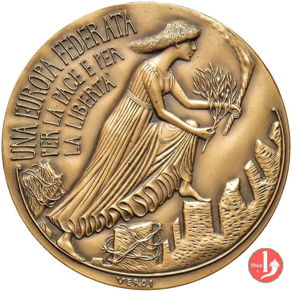 Dritto: circolarmente, a sx su tre righe: UNA EUROPA FEDERATA = PER LA PACE E PER = LA LIBERTA'
