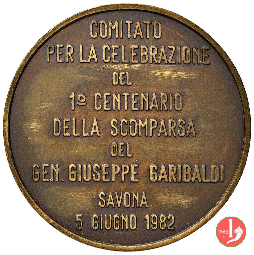 Comitato 100° Garibaldi 05-06-1982 Dritto: Il Monumento equestre di Garibaldi a Savona volto a sx Verso: nel campo: COMITATO = PER LA CELEBRAZIONE = DEL = 1° CENTENARIO = DELLA SCOMPARSA = DEL = GEN. GIUSEPPE GARIBALDI = SAVONA = 5 GIUGNO 1982 | |