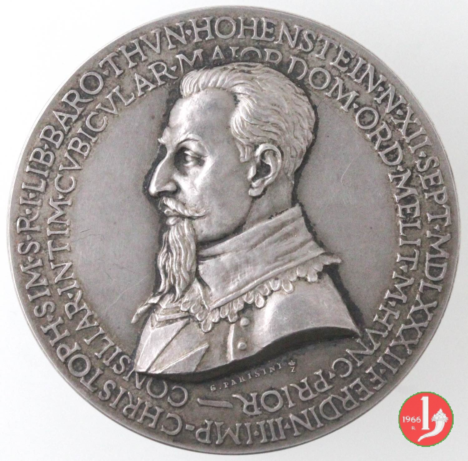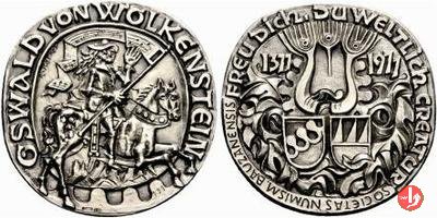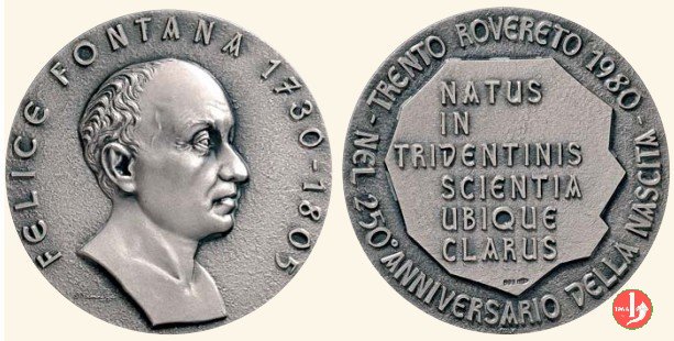 nel campo, entro forma irregolare: NATUS = IN = TRENTINIS = SCIENTIA = UBIQUE = CLARUS