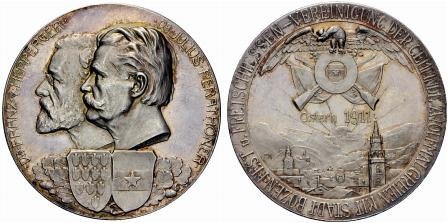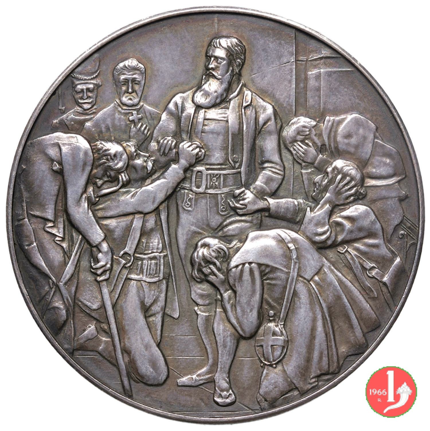 Verso: campo vuoto tra rami d'alloro e quercia, fermati da targa, in basso, su cartiglio: ESPOS-E CAMPIONARIA = INTERNAZIONALE