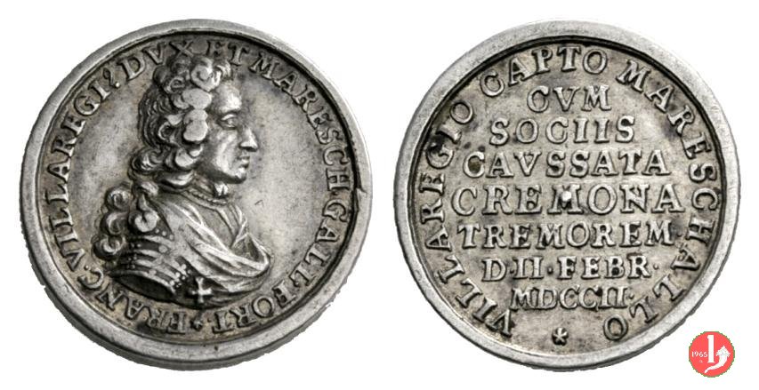 Verso: nel campo: SERVATA = CREMONA • = MANTUA LIBERATA • = FUSO HOAST • EXERC • = GUASTALLA = CAPTA • = R