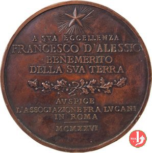 Francesco Saverio Nitti 1915 Dritto: busto di 3/4 a dx con giacca, camicia e cravatta in basso a dx: DAL CASTAGNE' _ AC INC. a sx presso il bordo: S.JOHNSON in esergo: MVRO LVCANO = AL SVO CITTADINO ONORARIO = FRANCESCO NITTI = MCMXV | |