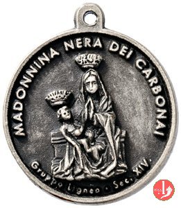 Longobucco -Madonna Nera dei Carbonai 1999 Dritto: MADONNA NERA DEI CARBONAI busto della B. V. Maria coronata ed orante col Bambino coronato in braccio sotto, circolarmente: GRUPPO LIGNEO • SEC. XIV. nel campo: LONGOBURGUS = OCT MDCCXCIX = MCMXCIX = TERTIO MILLENNIO = ADVENIENTE = JUBILAEUM = MAGNUM | |