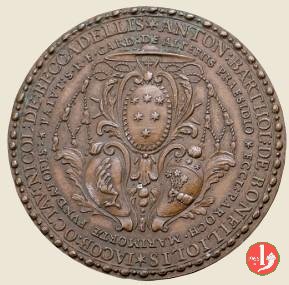 Carlo Balestra Dritto: CAROL. PIVS. BALESTRA. CIV. ROM. BONIS. ARTIBVS. busto a dx sotto: B • PERGER • F nel campo Minerva elmata seduta verso dx e volta sx regge scudo iscritto: AEQVA = compasso e pennelli = POTES = TAS, a sx putto alato, sotto: busto e tavolozza in basso, a sx: B.P.F. | |