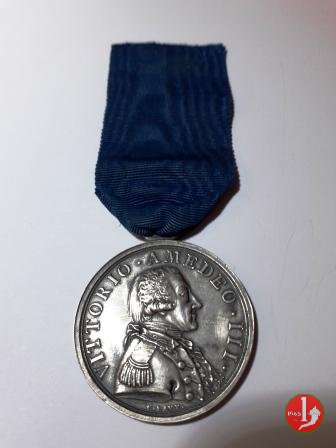 Premio per L'accademia di Pittura e Scultura -UdS XXXIX-27 Dritto: VICTORIVS • AMEDEUS • III • REX • SARD • A • R • VI busto a dx con parrucca, corazza e mantello sul taglio spalla: LAVY | |