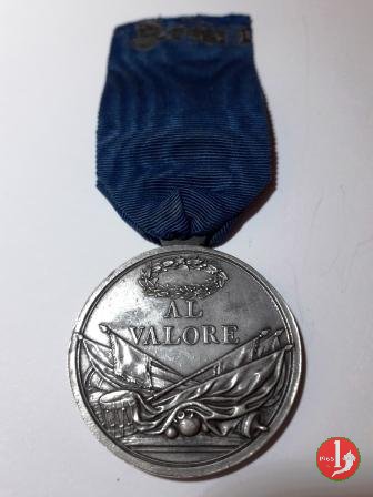 Medaglia Mauriziana pel Merito Militare X lustri Dritto: S. MAURIZIO PROTETTORE DELLE NOSTRE ARMI San Maurizio a cavallo verso dx sulla base: FERRARIS | |