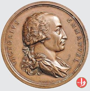 Accademia delle scienze di Torino 1783 -UdS XXXIX-34 Dritto: VICTORIVS AMEDEVS III REX SARDINIAE busto corazzato a dx col collare dell'Annunziata sul taglio spalla: LAVY Figure allegoriche in piedi affrontate, una raggiante e l'altra velata con caduceo in esergo: R. SCIENT • TAVRIN • ACADEMIA = INSTAVRATA = MDCCLXXXIII | |