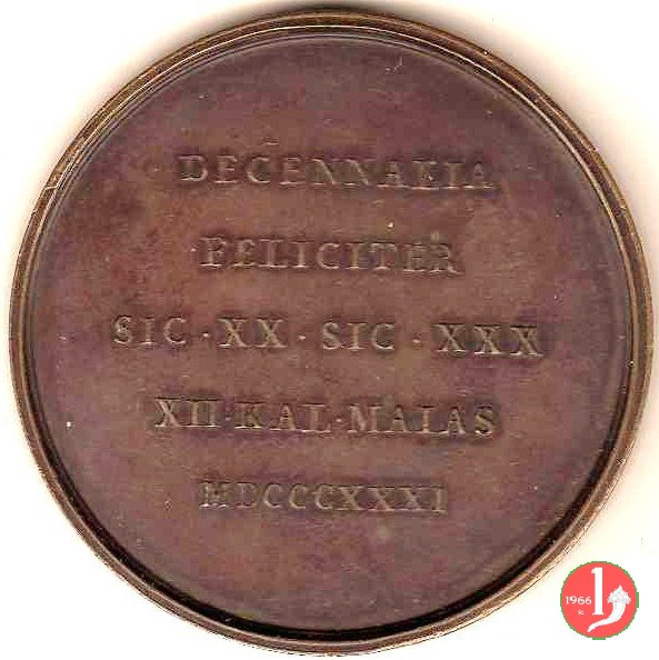 10° Anniversario di Regno 12-05-1831 Dritto: KAROLVS FELIX SARDINIAE REX busto in uniforme a dx sotto: G • GALEAZZI F • | |