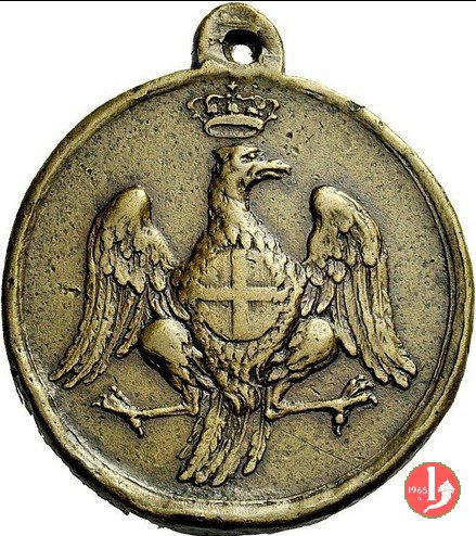 Riconoscimento ai Salnitrari 1779 Dritto: Aquila coronata ad ali spiegate e volta a destra, caricata di Croce di Savoia Verso: Trofeo darmi da fuoco sormontato da corona | |