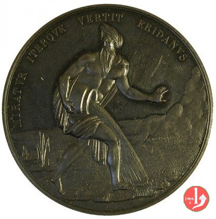 Deviazione del Po 1825 Dritto: MIRATVR ITERQVE VERTIT FRIDANVS Figura allegorica del fiume Po, in piedi, gradiente verso dx, versa acqua da giara nel campo a dx: F. PVTINATI | |