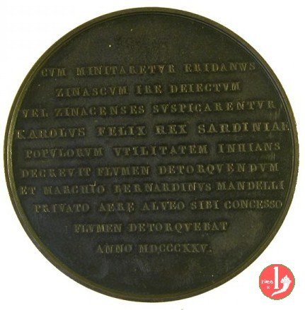 Sistemazione Fiume Isere 1824 Dritto: CAROLVS FELIX REX SARDINIAE DUX SABAUDIAE Busto a sx sotto: A. LAVY F. Il Re, in divisa, in piedi, di fronte, a sx la figura allegorica dellAgricoltura e a dx il fiume Iser disteso, alle sue spalle le montagne in esergo: ISARAE ALVEUS DESCRIPTUS = A • MDCCCXXIIII | |