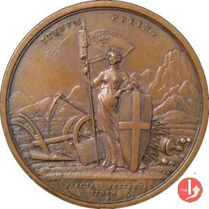 Istituzione della Società Agraria 1789 -UdS XXXIX-38 Dritto: VICT • AMEDEUS • III • REX • SARD • _ SOCIETATIS AGR • INSTITUTOR busto a dx con parrucca, mantello sotto la spalla: C. LAVY La figura allegorica dell'Agricoltura, velata, in piedi di fronte volta a sx, regge zappa, dietro aratro e paesaggio campestre in esergo: MDCCLXXXIX | |