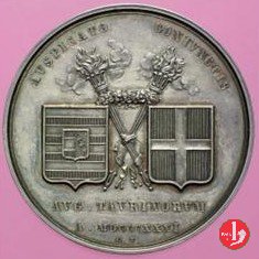 Istituzione Accademia Ligustica di Belle Arti Dritto: REX • KAROLUS • _ ALBERTVS • AVG • TESTA di Re Carlo Alberto a dx sotto: F • PUTINATI la figura allegorica della città di Genova, turrita, seduta, a sx, riceve, dal Genio delle Belle Arti, volto a dx, serto di alloro. Il Genio regge emblemi di Belle Arti. al centro: una colonna con rostri sormontata dallo stemma bifronte di Genova; in esergo: ACADEMIA LIGVSTICA = MDCCCXXXII • | |