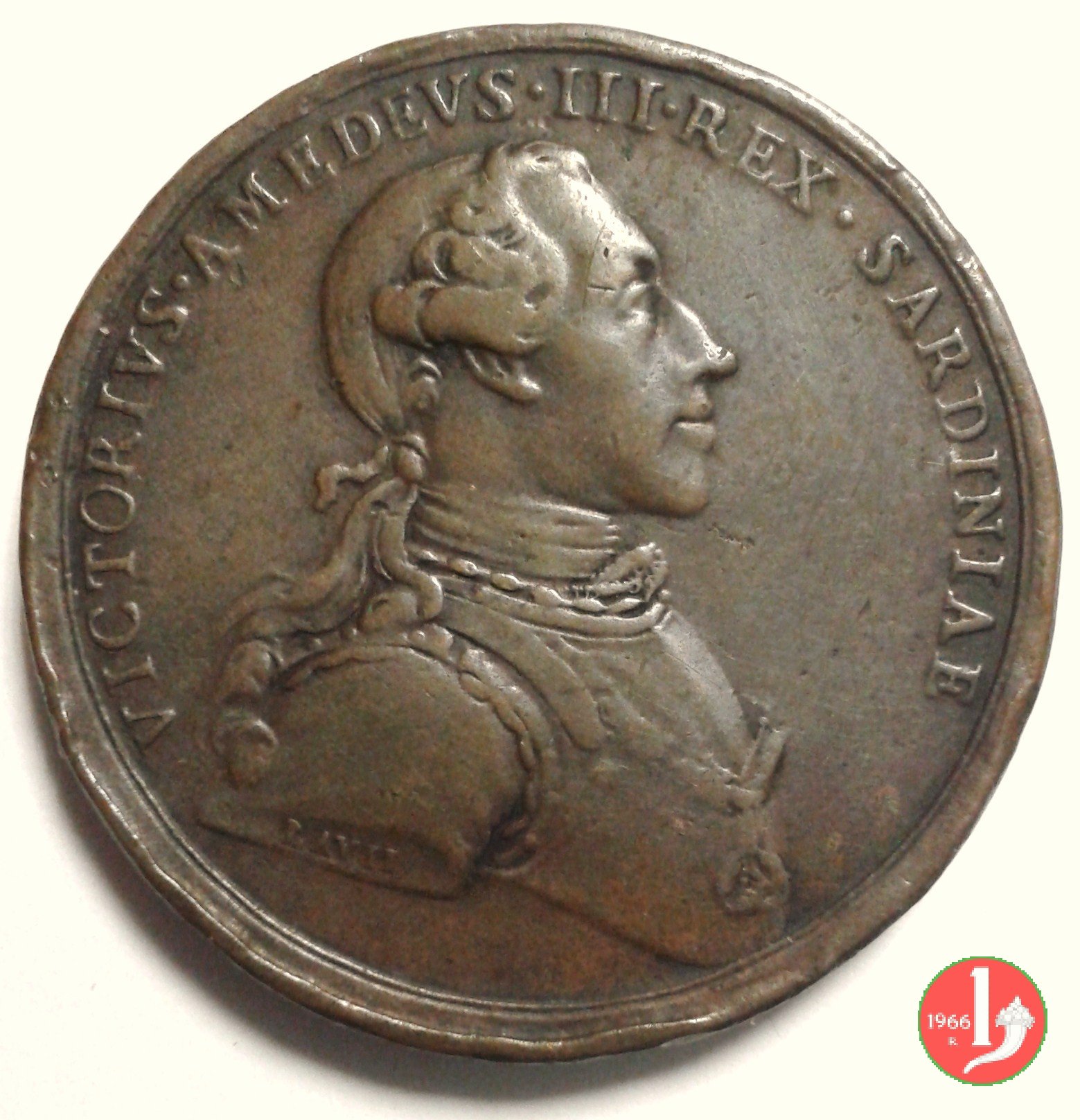 Premio per l'Accademia di Pittura e Scultura -UdS XXXIX-24 Dritto: VICTORIVS. AMEDEVS. III. REX. SARD.A.R. VI. Busto a dx con parrucca, armatura e collare della SS. Annunziata sul taglio spalla: LAVII sotto circolarmente: MDCCLXXVIII | |
