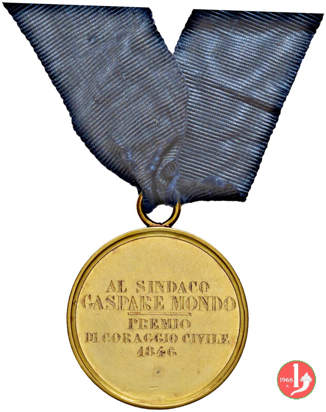 Verso: nel campo inciso: AL SINDACO = GASPARE MONDO = - = PREMIO = DE CORAGGIO CIVILE = 1846