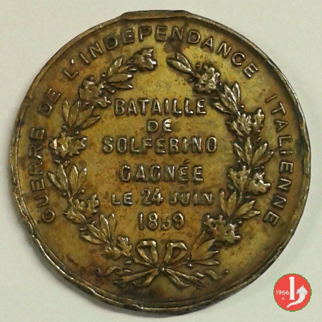 entro rami d'alloro legati in basso da nastro: VICTOIRE = DE = SOLFERINO = GAGNEE = LE 24 JUIN = 1859