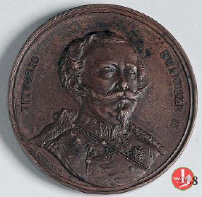 Verso: nel campo: NON HO = ALTRA AMBIZIONE = CHE QUELLA D'ESSERE = IL PRIMO SOLDATO = DELL'INDIPENDENZA = ITALIANA = - • - = TORINO = IL 28 APRILE = 1859