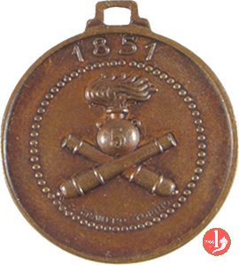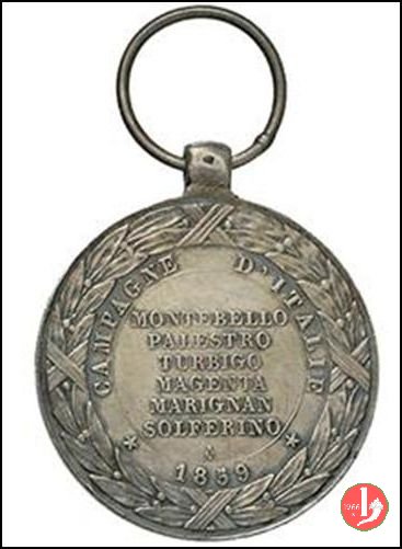 Verso: entro ghirlanda di alloro legata in basso da nastro: PRIMO = SOLDATO = D'ITALIA = 1859