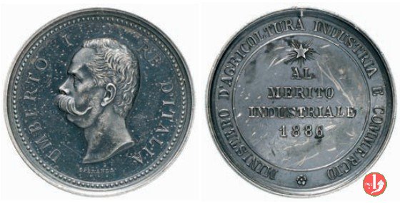 Al Merito Industriale Dritto: UMBERTO I _ RE D'ITALIA busto nudo a sx sotto: SPERANZA nel campo: * = AL = MERITO = INDUSTRIALE = 1886 | |