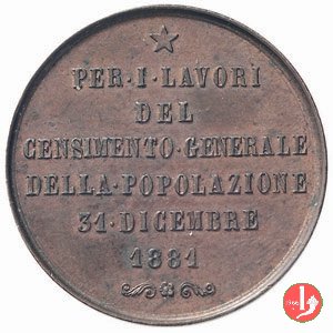 Censimento della popolazione 31-12-1881 Dritto: MINISTERO D'AGRICOLTURA INDUS • E COMMERCIO = * MEDAGLIA D'ONORE * Stemma Savoia coronato | |