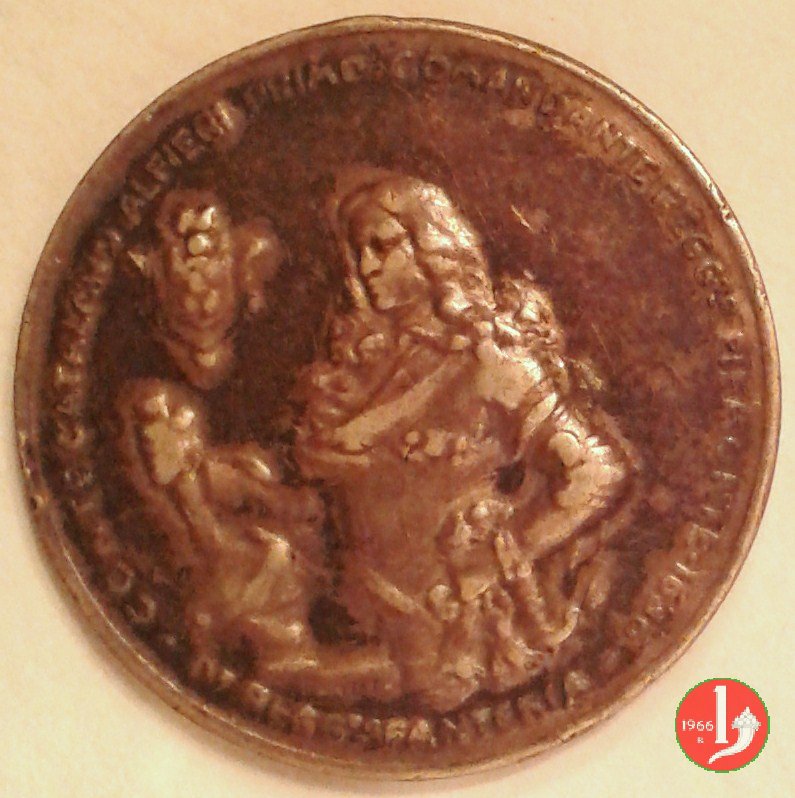 Com. Regg. Fanteria Conte Catalano Alfieri Dritto: CONTE CATALANO ALFIERI COMANDANTE REGG.° PIL 1636 = • REGG.° FANTERIA • busto corazzato del Conte Alfieri di 3/4 a sx in alto, a sx: Stemma Scena di Battaglia | |