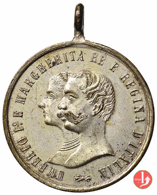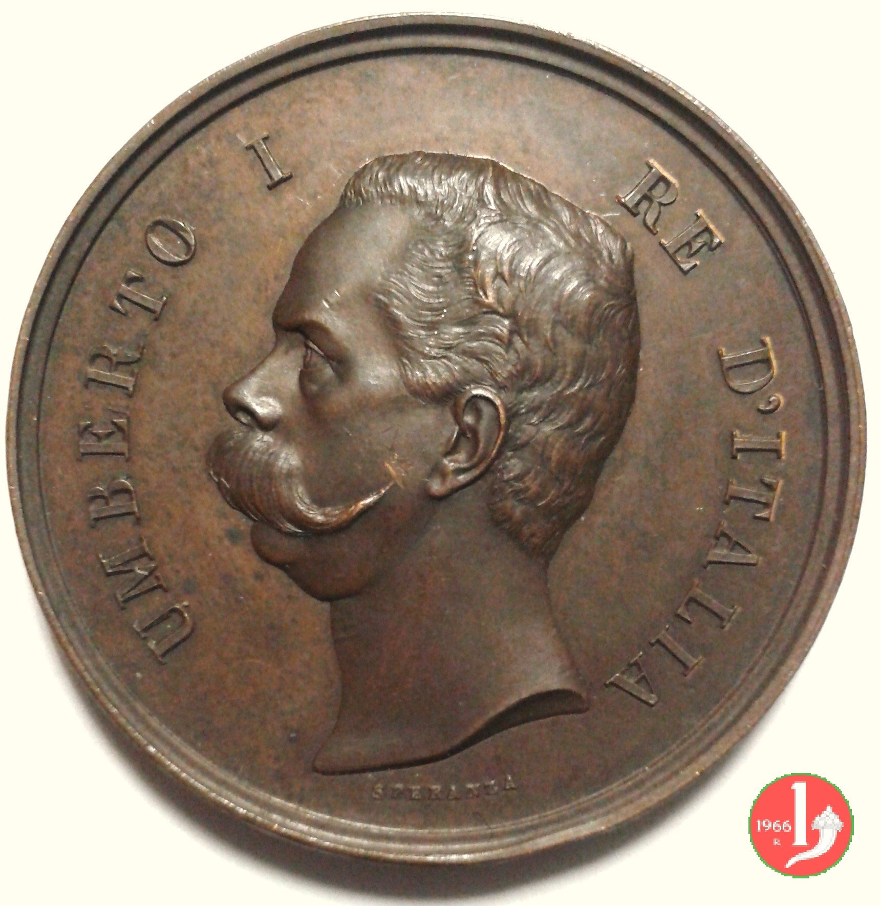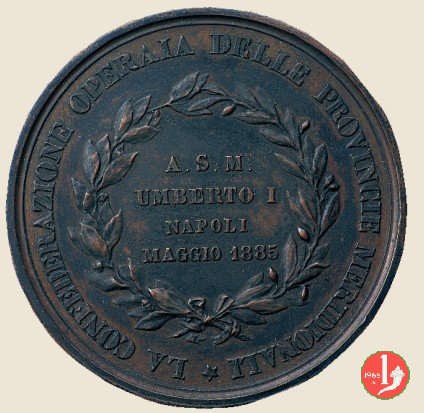 Confederazione Operaia Prov. Meridionali Dritto: UMBERTO I _ RE D'ITALIA busto a dx sotto: L. INSENGA nel campo, entro rami di alloro legati da nastro in basso: A. S. M. = UMBERTO I = NAPOLI = MAGGIO 1885 | |