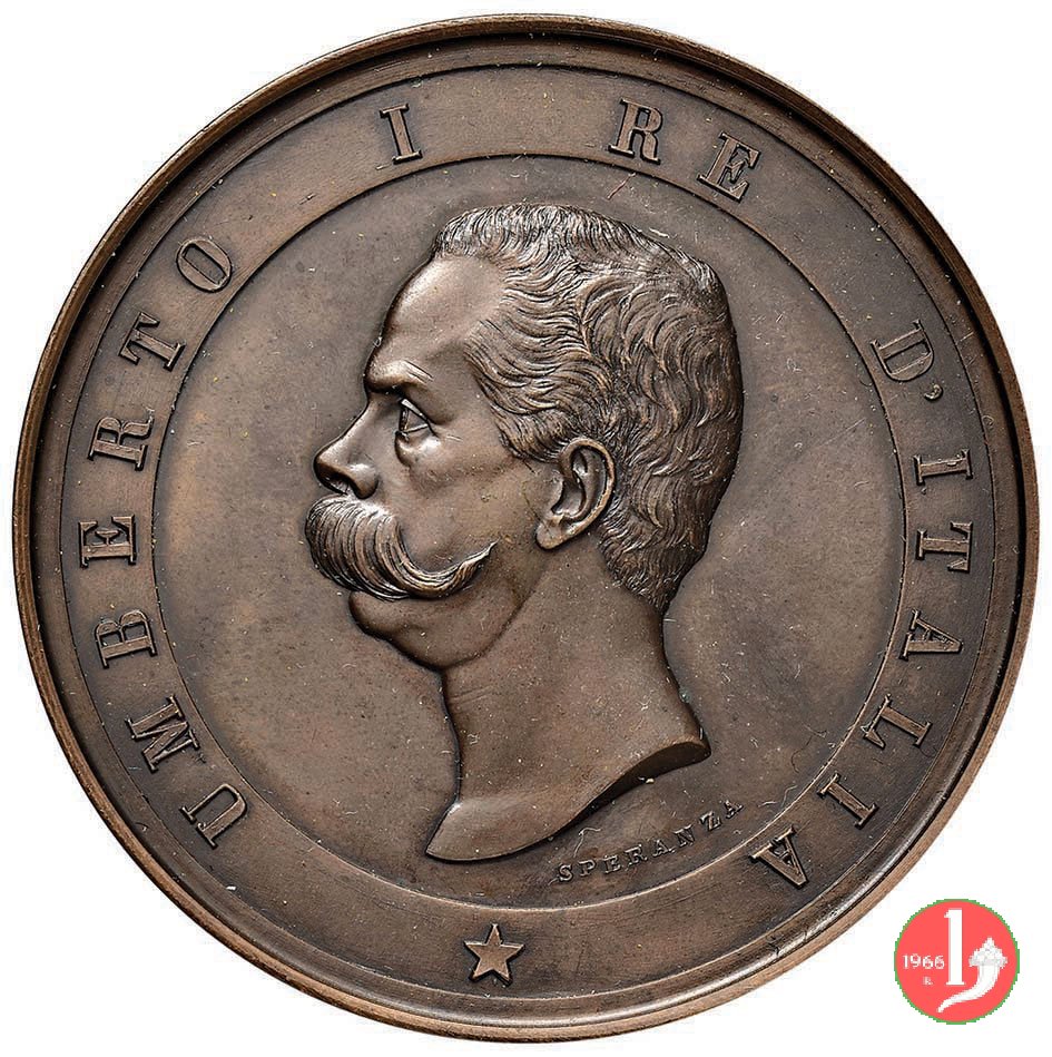 II° Esposizione d' Industria Italiana - Milano Dritto: UMBERTO I _ RE D' ITALIA testa di 3/4 a dx con lunghi baffi sotto: CORRADO E BECCARIA = INC. MEC. Vista della sede espositiva sulla pavimentazione a dx: L.C - A.B in esergo: MILANO = MDCCCLXXXI | |