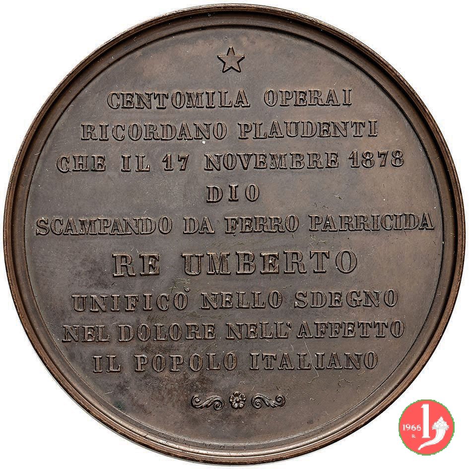 Sventato Attentato a Umberto I 17-11-1878 37mm Dritto: UMBERTO I _ RE D'ITALIA busto nudo a sx