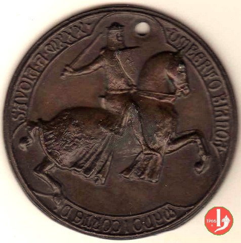 200° Annivers. Reggimento Nizza Cavalleria 1890 -UdS XXX-28 Dritto: UMBERTO I _ VITTORIO AMEDEO II busti accollati a dx dei due Sovrani in alta uniforme e con collari della SS. Annunziata, sormontati da stella a cinque punte sotto: Stemma Savoia coronato tra nodi d'amore in basso, a sx: JOHNSON - MILANO nel campo in alto: aquila Sabauda coronata = A MEMORIA CHE HA _ QUESTO ANNO 1890 = IL REGGIMENTO NIZZA CAVALLERIA = CONTA DUE SECOLI DI VITA SACRATA = AI SUOI RE _ ED ALLA PATRIA in esergo, entro doppio cartiglio sormontato da lance decussate ed elmo: 1690-1890 ai lati dell'esergo: POGLIAGHI • MOD • _ CAPPUCCIO INC. | |