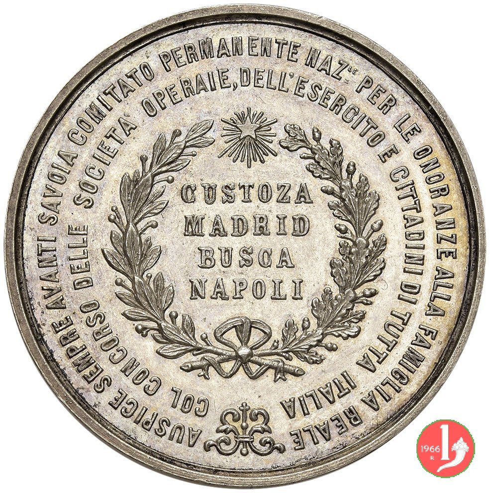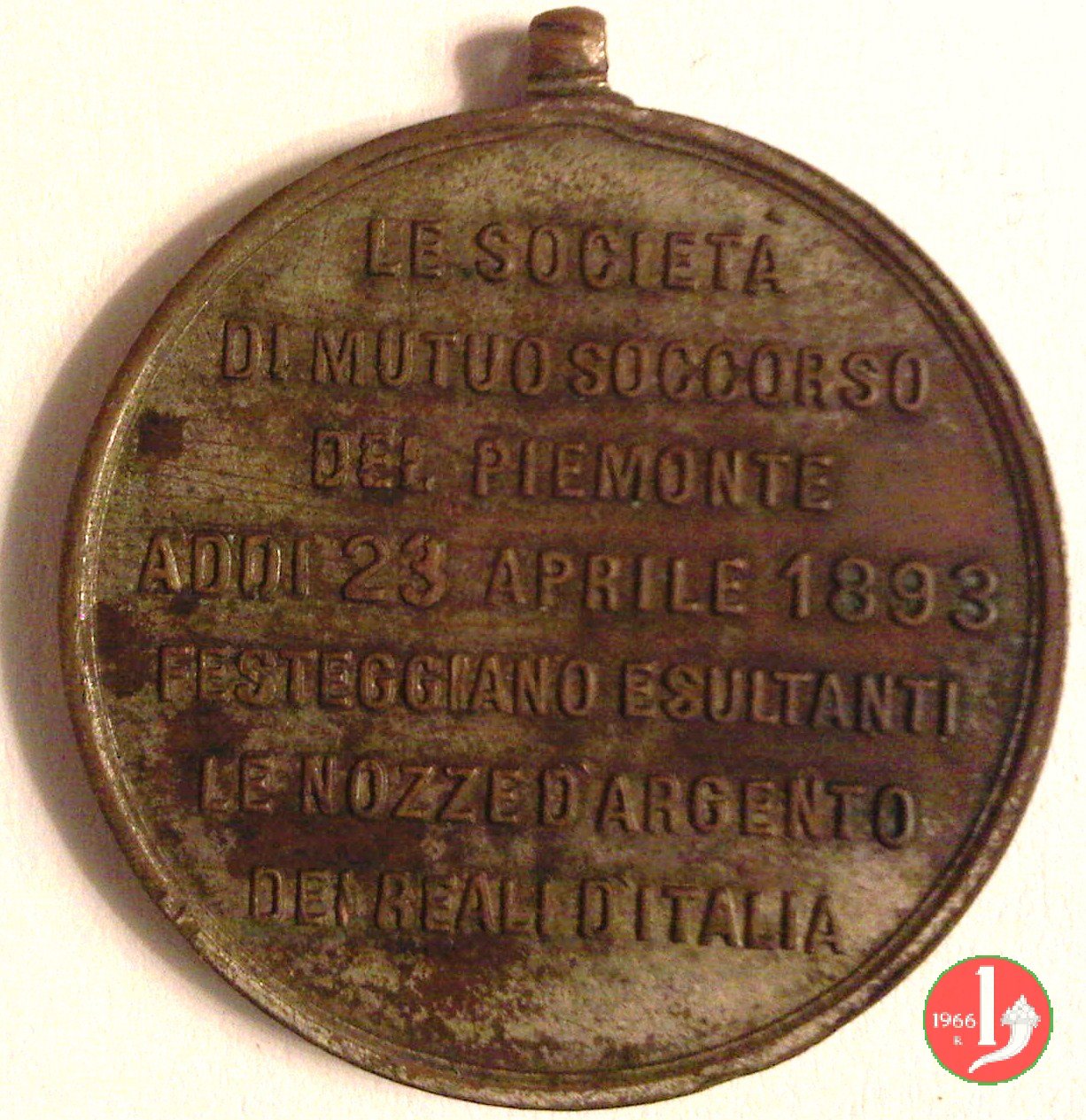 Nozze d'Argento-Mutuo Socc. Piemonte 23-04-1893 Dritto: UMBERTO I RE D'ITALIA MARGHERITA DI SAVOIA REGINA = * 1868 - 1893 * busti accollati a sx | |