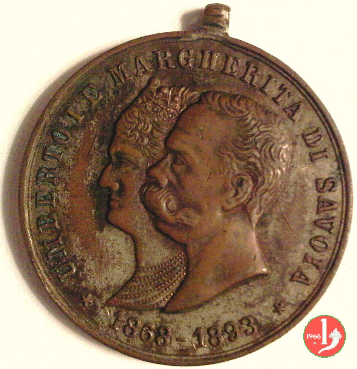 Nozze d'Argento 22-04-1893 21mm Dritto: UMBERTO I E MARGHERITA DI SAVOIA * teste accollate a sx sotto: SPALLETTA | |
