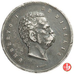Premio Arte Professionale Torino 1898-99 Dritto: VMBERTVS • I • VICTORII • EMMAN. II • F • ITALIAE • REX • busto a dx con alta uniforme e collare dell'Annunziata sul nastro che cinge l'alloro: STUDI _ SCIEN. _ ARTI _ INDUS. in basso, disposta a semicerchio: THERMIGNON | |