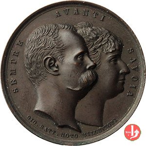 Nozze d'Argento - Sempre Avanti Savoia 29mm Dritto: SEMPRE _ AVANTI _ SAVOIA teste accollate a dx di Umberto e Margherita sotto: GIO. BATT. MOTO MILLEFIORI | |