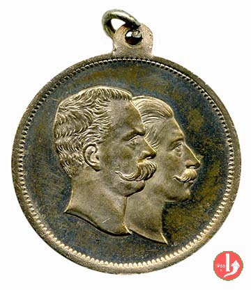 Visita a Berlino 27mm Dritto: teste accollate a dx di Guglielmo II ed Umberto I Verso: Nel campo: UMBERTO I = KÖNIG V. ITALIEN = BESUCHT = WILHELM II = KAISER V. DEUTSCHLD. = KÖNIG V. PREUSSEN = 21-25 MAI = 1889 | |