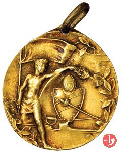 VII Concorso Federale Ginnastico 1907 Dritto: mezzo busto di fronte della figura allegorica della Vittoria che alza serto d'alloro e scrive su pergamena; sullo sfondo leone di San Marco assiso e volto a dx nel campo, a sx: VII CONCORSO = FEDERALE = NAZIONALE = GINANSTICO nel campo, a dx: VENEZIA= MCMVII in basso, a sx, presso il bordo: MASETTI-EFDI & C in basso, a dx: S. SORMANIDIS in basso, presso il bordo: P. MASETTI-FEDIMC FIRENZE | |