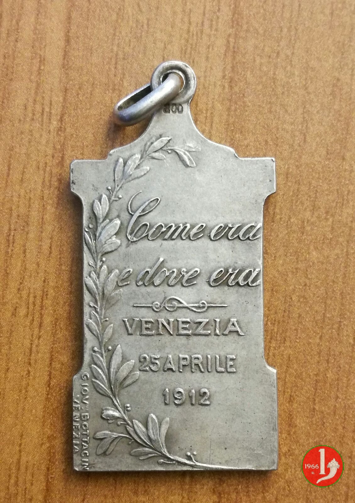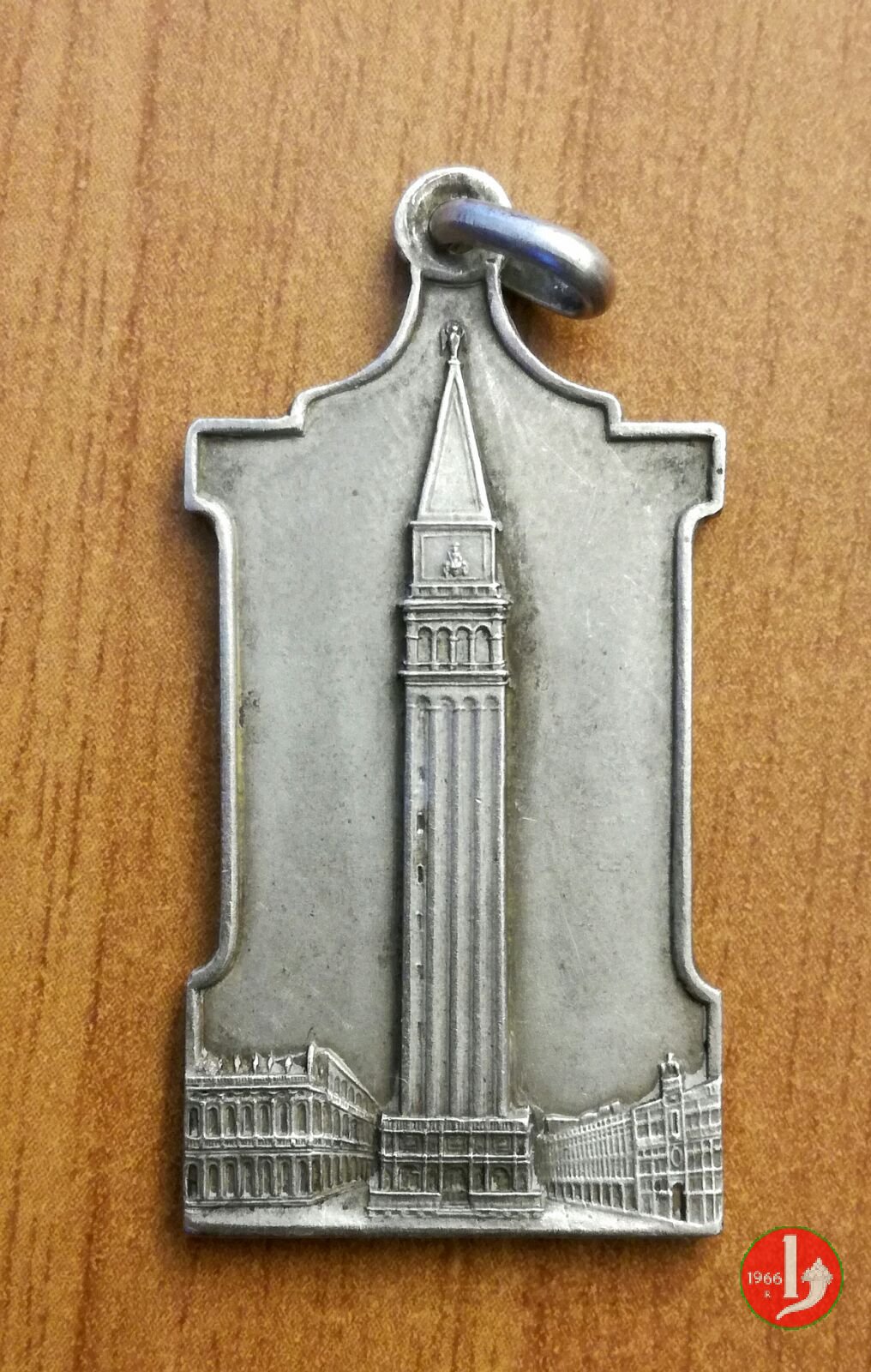 1912 Ricostruzione Campanile di S. Marco 20x39mm Dritto: Prospetto anteriore del Campanile di San Marco Verso: nel campo, con a sx ramo d'alloro: COME ERA = E DOVE ERA = fregio = VENEZIA = 25 APRILE = 1912 in basso, a sx, verticalmente: GIOV. BOTTACIN = VENEZIA | |