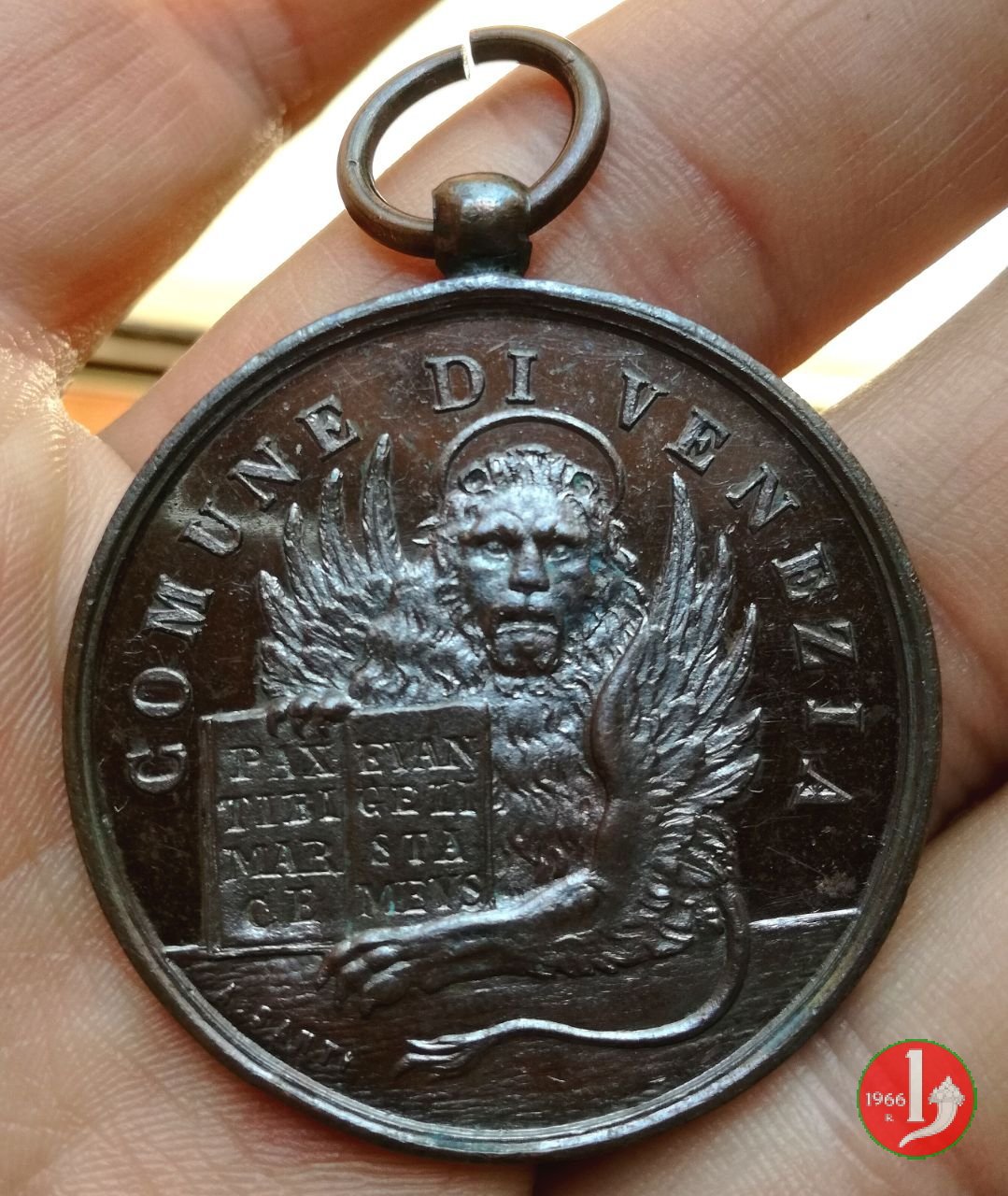 Premio Scolastico - Comune di Venezia Dritto: COMUNE DI VENEZIA Leone di San Marco nimbato di fronte, regge Vangelo: PAX = TIBI = MAR = CE _ EVAN= GELI = TA = MEVS in basso, a dx: A. SANTI | |