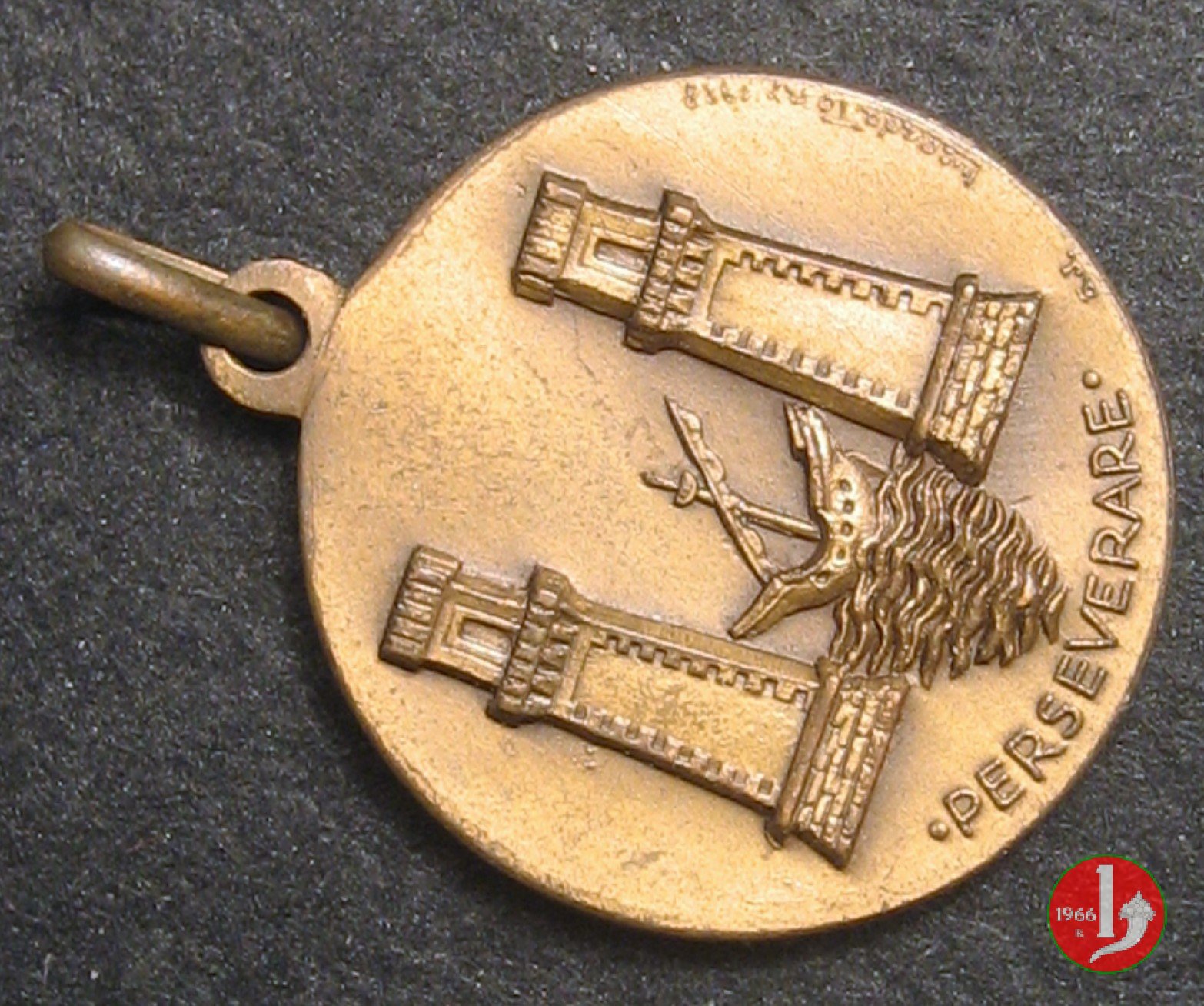 Società Ginnica Sportiva SPES 1949 Dritto: su ghirlanda di foglie di alloro: C.O.N.I. = F.G.I. nel campo: Torre di Mestre e Stemma della Città nel campo, a sx in basso: LOROILI | |