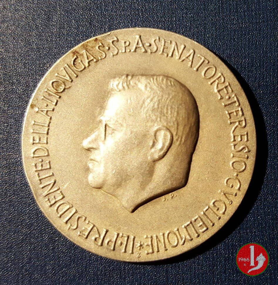Porto Marghera - Teresio Guglielmone 1953 Dritto: IL • PRESIDENTE • DELLA • LIQVIGAS • S.P.A • SENATORE • TERESIO • GVGLIELMONE * testa a sx sotto: J.P. in basso: Z |