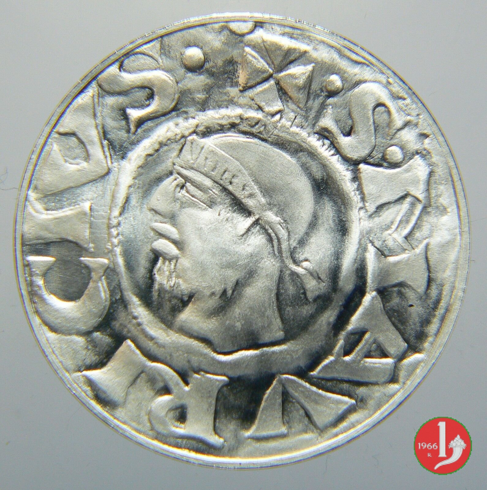 Sant'Anselmo 1982 Dritto: SANCTVS • ANSELMVS • ARCH • CANTVARIENSIS • DOCTOR • ECCLESIAE •AVGVSTAE • PRAET • NATVS ✠ circolarmente in seconda riga: NOBILIS • ET • SAPIENS • BONVS • ET • SERMONE • REFVLGENS • MVNDI • DESPECTOR • CHRISI • PREFECTVS • AMATOR busto nimbato di fronte con abito talare e pallio regge penna e libro | |