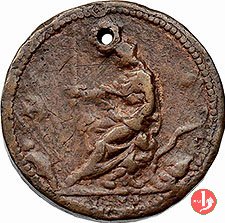 Antonio Rambaldo I -V1422 Dritto: ANT RAMBALDUS COLLALTI COMES & C Busto a destra con lunga parrucca, corazza e mantello sotto: GENNARO F Minerva galeata, con i simboli delle arti, seduta accanto a due putti, e rivolta verso la Fortuna seminuda, pure seduta, con la ruota ed una cornucopia; in secondo piano due colonne sopra un basamento sotto entro nastro: MDCCXXIII | |