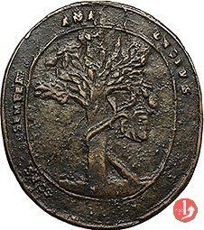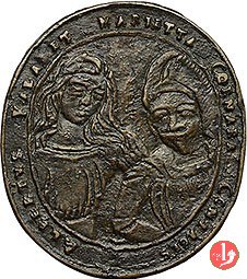 Alberto Valla e Marietta Cornara -V1166 Dritto: ALBERTVS VALA ET MARIETTA CORNARA CONIVGES Busti dei due sposi di fronte Albero di olivo con attorcigliata una vite | |