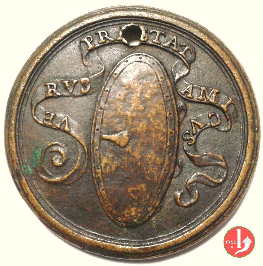 SS. Apostoli Pietro e Paolo - Chierici Regolari 1626 Dritto: HI SVNT QVI PLANTAVERVNT ECCLES. SANGVINE SVO busti affrontati e nimbati dei SS. Apostoli Pietro e Paolo con chiavi ed elsa di spada Croce su altura ai lati: CLERICI _ REGVLAR. | |