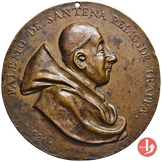Santena (TO) - Palemo da Santena 1694 Dritto: PALEMO DE SANTENA RELIG. DE TRAPPA. busto a dx con saio col cappuccio sotto: • 1694 • | |