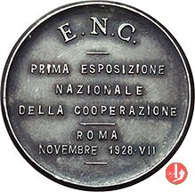 Esp. Nazionale Cooperazione Roma -C92 Obverse: incudine, martelli e tre fasci decussati in basso, a dx: CD e Z coronata nel campo: - = PRIMA ESPOSIZIONE = NAZIONALE = DELLA COOPERAZIONE = - = ROMA = NOVEMBRE 1928 - VII = - | |